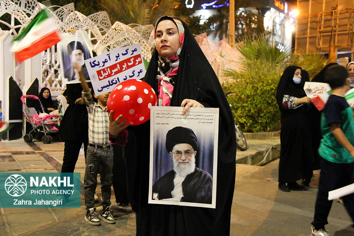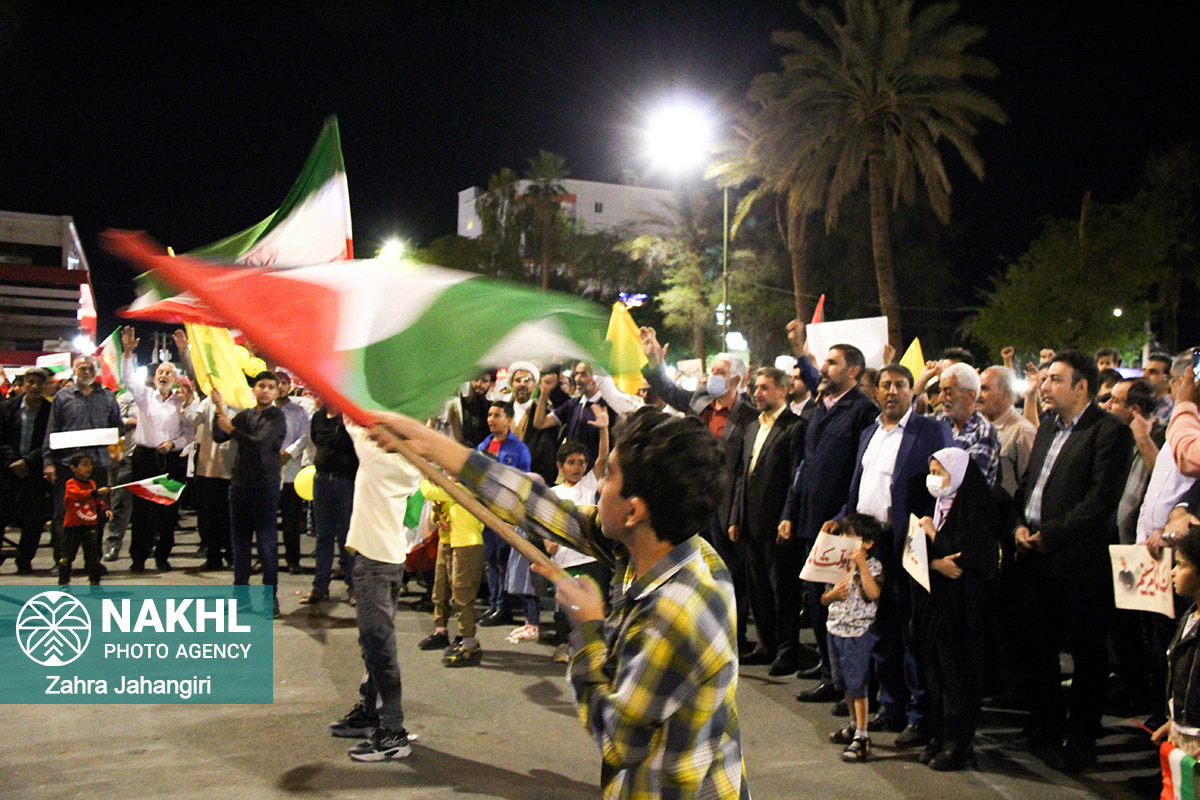 به گزارش#نخل_لارستان؛ جشن و تجمع مردمی در حمایت از حمله موشکی و پهپادی سپاه پاسداران به مواضع رژیم غاصب صهیونیستی در روبروی فرمانداری ویژه لارستان با حضور پرشور مردم و مسئولین لارستان برگزار شد. در این مراسم، شرکت کنندگان، فریاد مرگ بر آمریکا و مرگ بر اسرائیل، فلسطین پیروز است، اسرائیل نابود است و سپاه پاسداران تشکر تشکر، سر دادند.