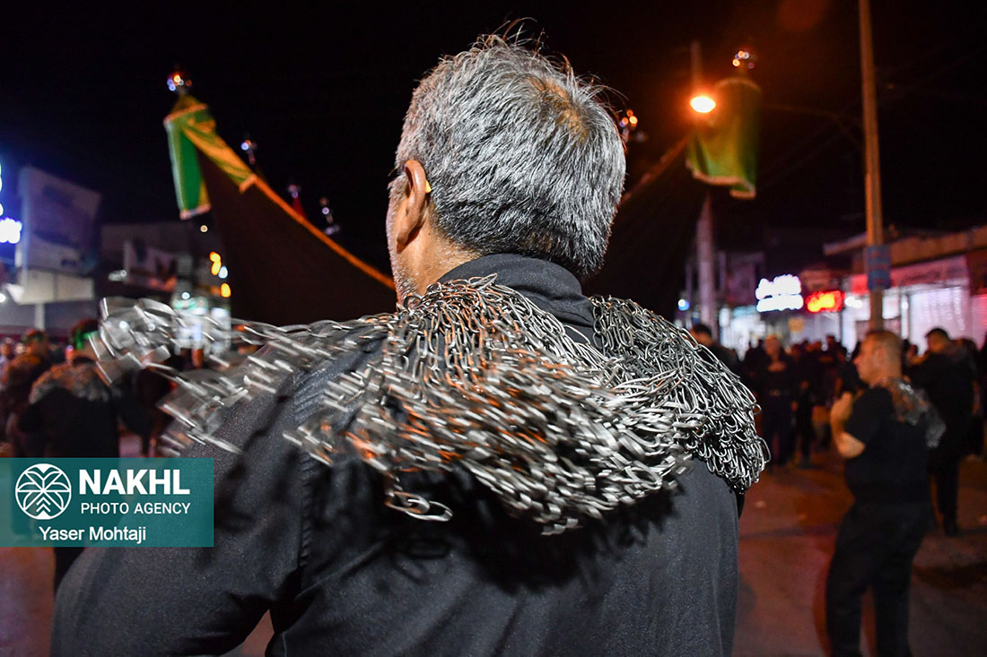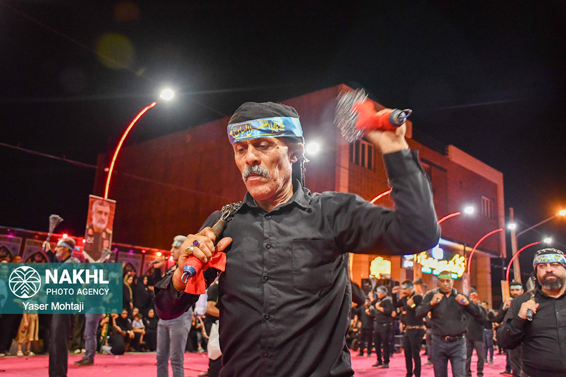 تصاویری از زنجیرزنی محرم 1404 در هیئت سیدالشهدا ع خیابان ساحلی لار