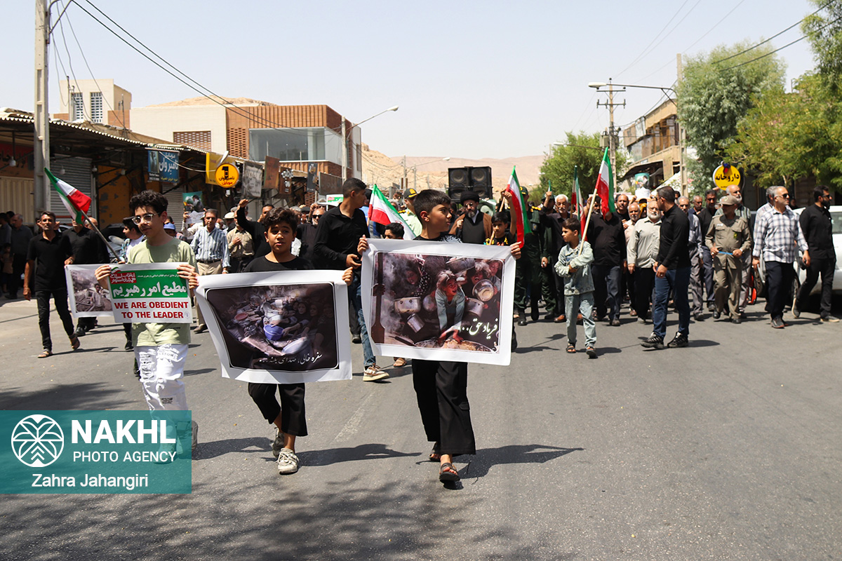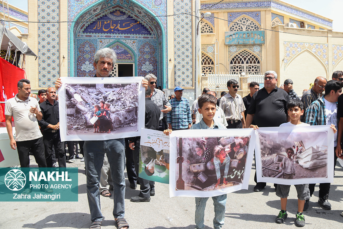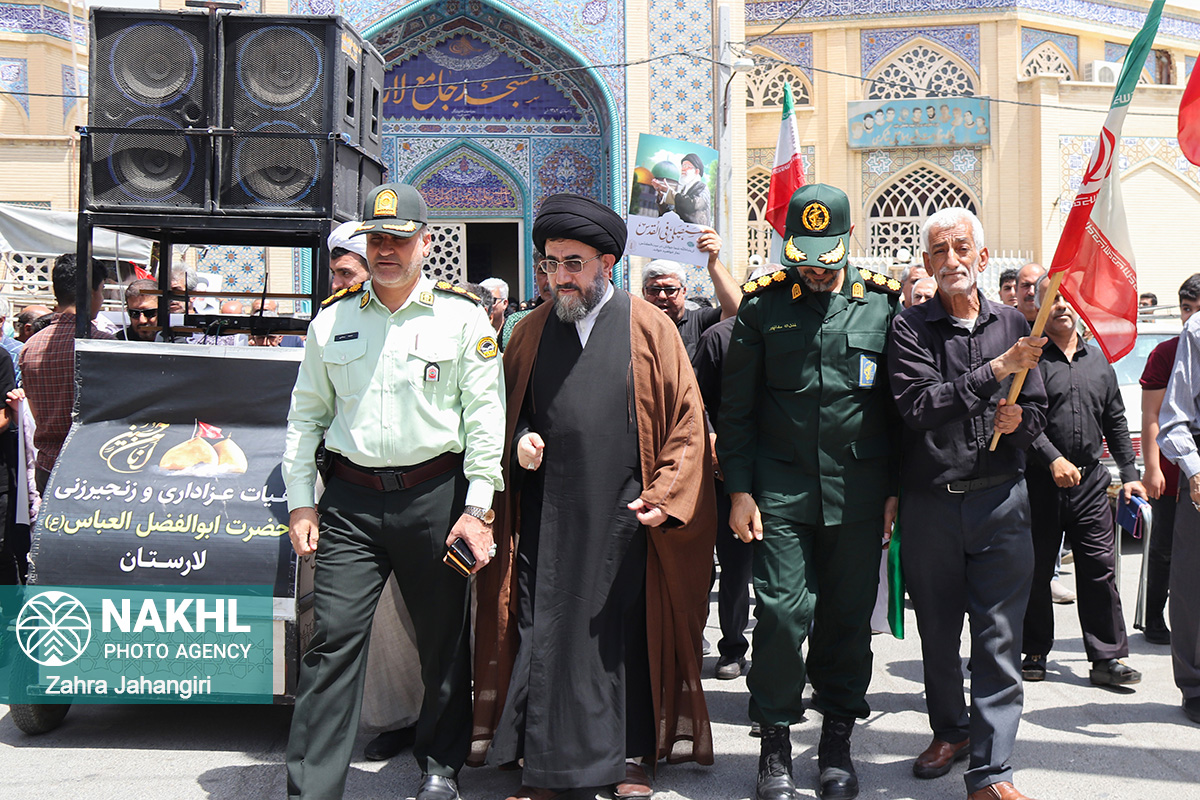 بخش اول / تصاویر نماز جمعه 3 مردادماه 1404 لار و راهپیمائی جمعه خشم و نصر در دفاع از مظلومیت و گرسنگی مردم غزه
