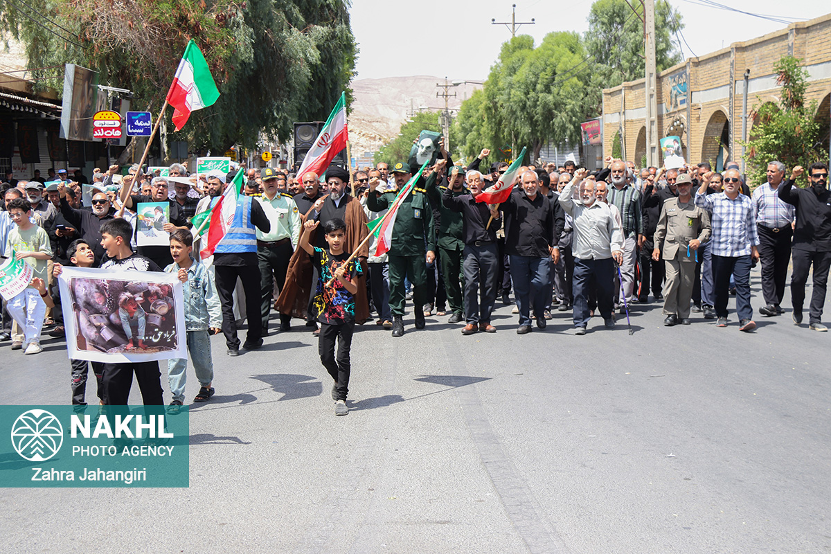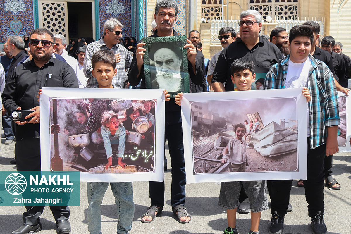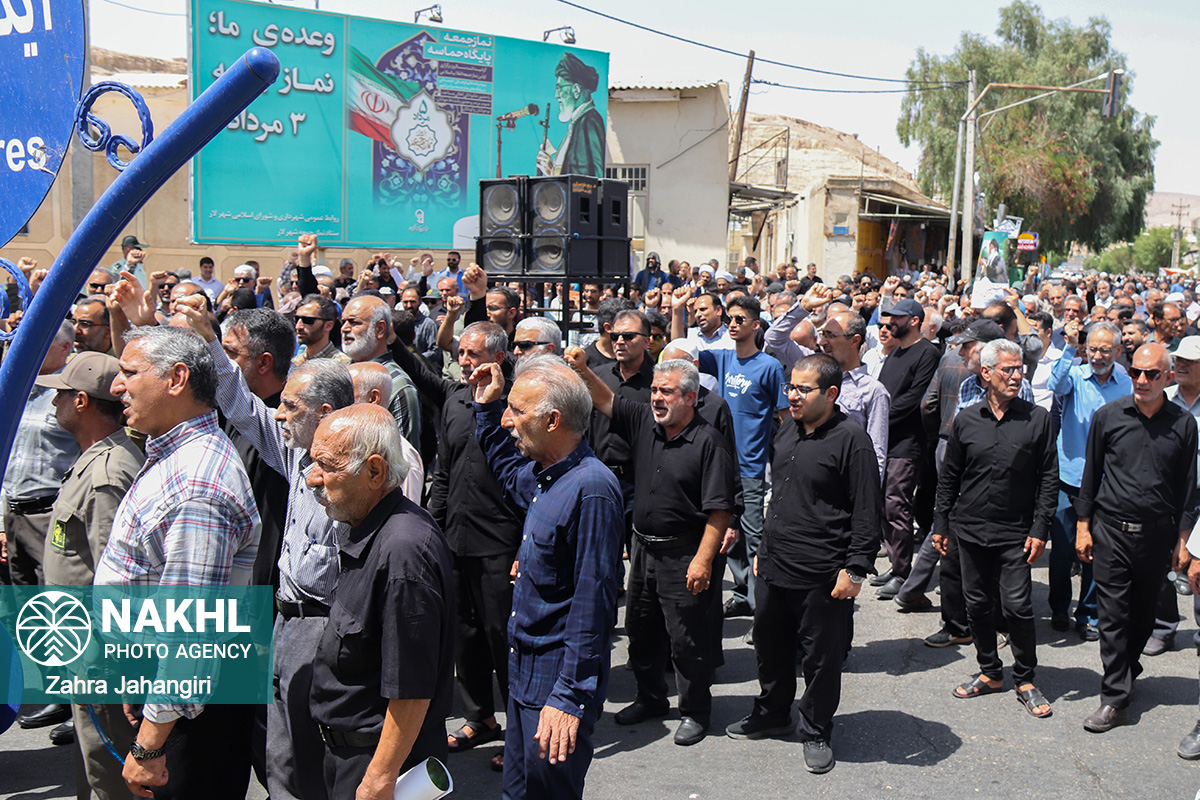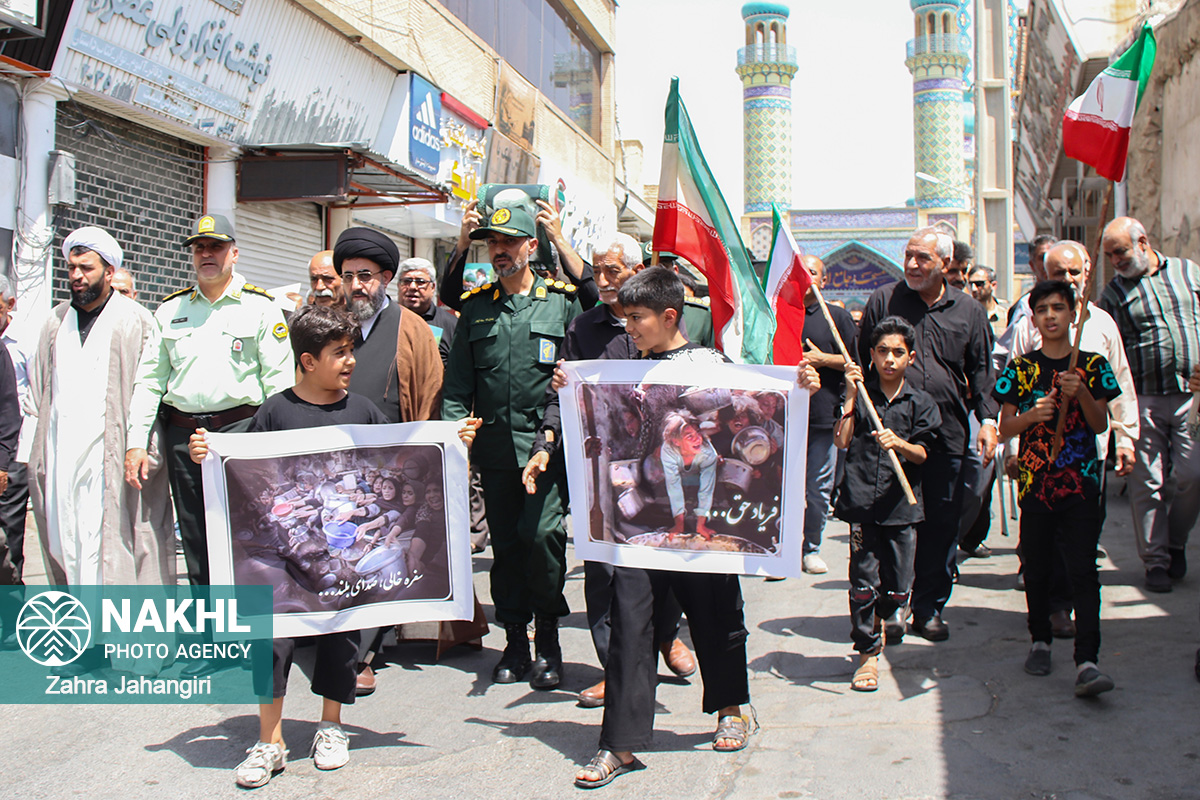 بخش اول / تصاویر نماز جمعه 3 مردادماه 1404 لار و راهپیمائی جمعه خشم و نصر در دفاع از مظلومیت و گرسنگی مردم غزه