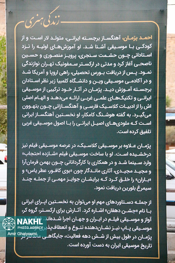 در بخش دیگری از این مراسم محمدرضا درویشی آهنگساز و پژوهشگر موسیقی با اشاره به شخصیت چند بعدی احمد پژمان اظهار کرد: پژمان تنها یک آهنگساز نبود؛ او سرمایهای ملی بود که آثارش در حافظه تاریخی موسیقی ایران ماندگار خواهد ماند. اپراها و آثار سمفونیک او نشان از نبوغی داشت که در موسیقی معاصر ایران کمتر دیده شده است.
