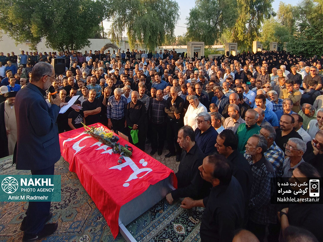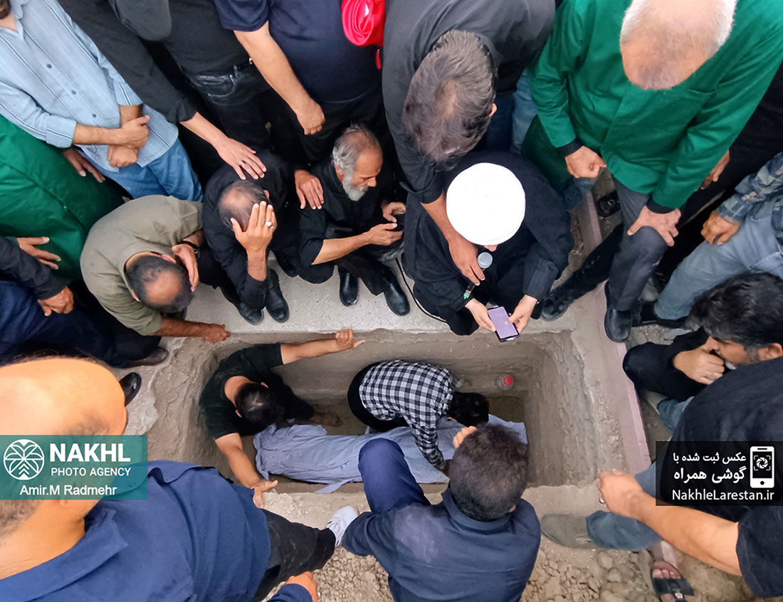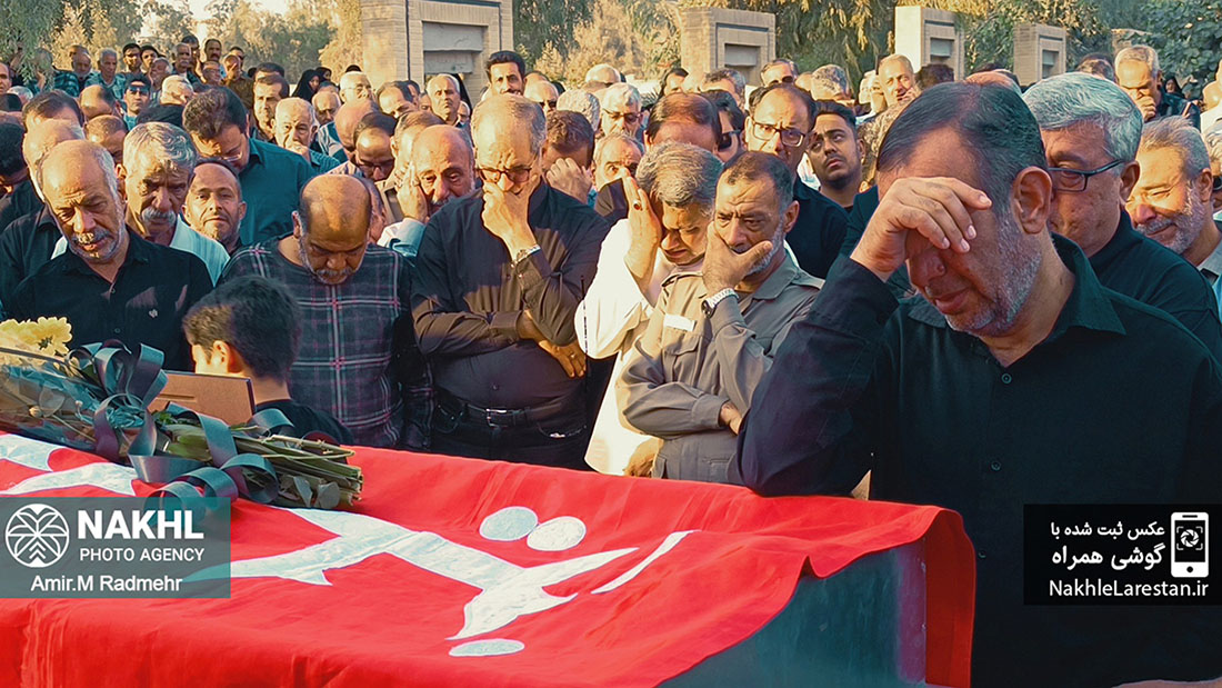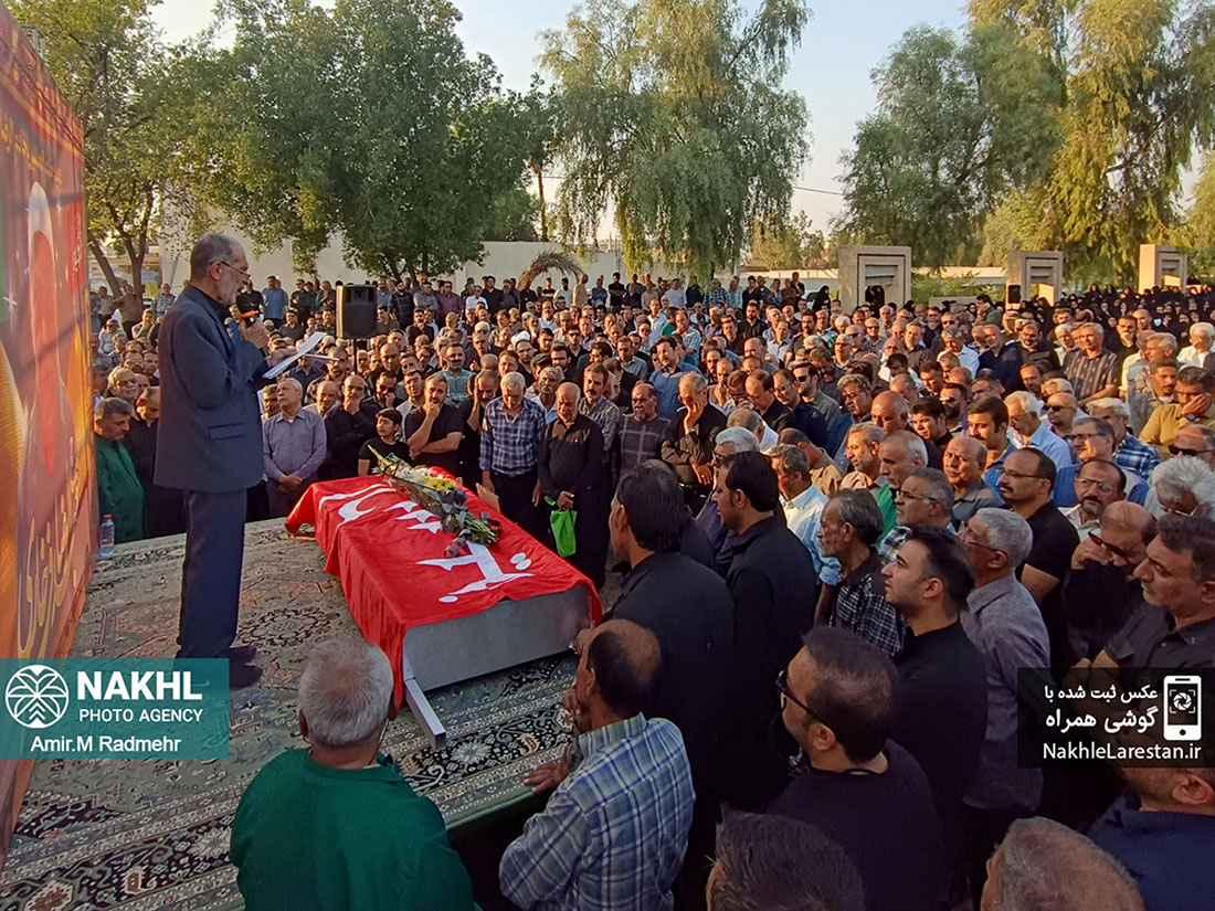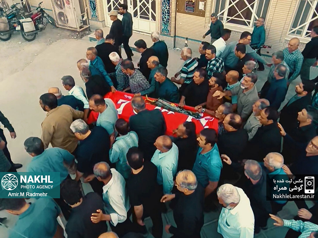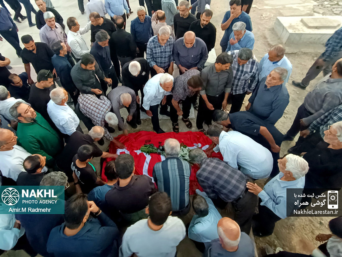 مراسم خاکسپاری خادم الرضاع کربلایی عبدالرضا فرخاری در قطعه ایثارگران دارالرحمه شهر قدیم لار